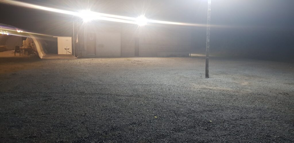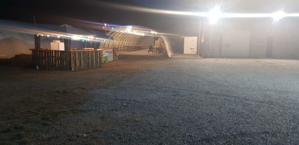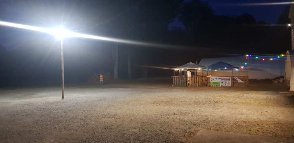 Depuis l’année dernière des améliorations ont été réalisées pour que les parties se déroulent dans les meilleures conditions. Des toilettes ont été installées par la mairie ainsi que l’ajout de tout venant et sable. Nous avons décidé de parfaire l’éclairage en ajoutant un poteau avec 6 spots LED en position centrale pour avoir de la lumière sur 360 degrés.