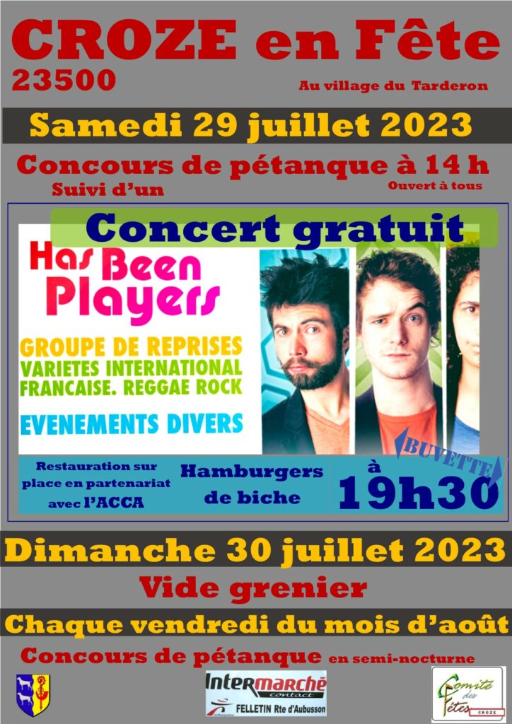 Croze en fête 27 avril 2023 Olivier Gascard Non classé 0 Voici le programme des festivités de l’été prochain.